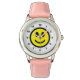 Kid's Happy face Pink Leather Strap Watch Armbanduhr