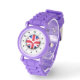Uhr, Kinderuhr aus Edelstahluhr mit lila Lederarmband