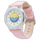 Kinderuhr aus Edelstahl mit rosa Lederarmband