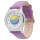 Uhr, Kinderuhr aus Edelstahluhr mit lila Lederarmband