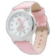 Kinderuhr aus Edelstahl mit rosa Lederarmband