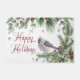 Schönes Weihnachtsgrün mit Kiefernästen und Kiefernkegel und niedlicher Tituan. Mit den Worten Happy Holidays - gibt es auch eine Version mit Frohen Weihnachten.