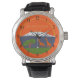 Uhr, Vintage Männeruhr mit schwarzem Lederarmband