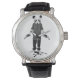 Uhr, Vintage Männeruhr mit schwarzem Lederarmband