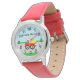 Uhr, Kinderuhr aus Edelstahl mit rosa Lederarmband