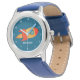 Kinderuhr aus Edelstahl mit blauem Lederarmband