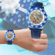 Kinderuhr aus Edelstahl mit blauem Lederarmband