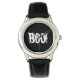 Kinderuhr aus rostfreiem Stahl mit schwarzem Gesicht und schwarzem Gurt mit Halloween Boo! Passen Sie diese Uhr an oder kaufen Sie, wie es ist.
