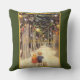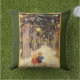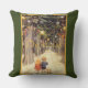 Zauberhaftes Weihnachtskissen mit zwei Kindern, die nachts in einem Wald spazieren und von allen Bäumen funkelnde Weihnachtsleuchten.