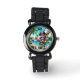 Uhr, Vintage Männeruhr mit schwarzem Lederarmband