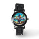 Uhr, Vintage Männeruhr mit schwarzem Lederarmband