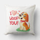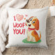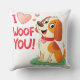 Throw Pillowe, "I Woof You!" - Ein lustiges Haustier-Liebhaberdesign mit einem niedlichen Hund mit einer herzförmigen Nase.
