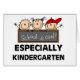 Drei wenige Strichmännchenkinder halten ein Schreibensbrett, das liest "Schule ist cool!" und schwärzen Sie Text liest "besonders Kindergarten" auf diesen niedlichen Strichmännchen Kindergarten-T - Shirts, die mousepads, SchulTaschentaschen, Knöpfe, Aufkleber, Karten und mehr, die für Kindergartenstudenten und Kindergärtnerinnen perfekt sind!
