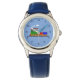 Kinderuhr aus Edelstahl mit blauem Lederarmband