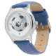 Kinderuhr aus Edelstahl mit blauem Lederarmband