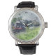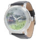 Uhr, Vintage Männeruhr mit schwarzem Lederarmband