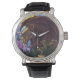 Uhr, Vintage Männeruhr mit schwarzem Lederarmband