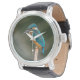 Uhr, Vintage Männeruhr mit schwarzem Lederarmband