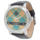 Kariertes Design in kingfisher Farben. Nahtloses Muster. Benutzerdefinierter Text und Monogramm.