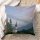 Kirche mit den Alpen bei Sonnenuntergang Kissen