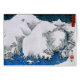 Utagawa Hiroshige (1797 - 12. Oktober 1858) war eine japanische ukiyo-e Künstlerin und einer der letzten großen Künstler dieser Tradition. Er wurde 1797 geboren und nannte "Ando Tokutaro" in den Yayosu Kasernen, direkt östlich von Edo Castle im Yaesu Gebiet von Edo (heute Tokio). Sein Vater war Ando Gen'emon, ein Erbbewahrer (der Doshin-Rang) des Shogun. Ein offizielle innerhalb der Feuerwehrorganisation, deren Aufgabe es war, Edo Castle vor dem Feuer zu schützen, lebten Gen'emon und seine Familie zusammen mit 30 anderen Samurai in einer der 10 Kasernen. Obwohl ihr Gehalt von 60 Koku sie als minderjährige Familie bezeichnete, war es eine stabile und sehr einfache Position — Professor Seiichiro Takahashi charakterisiert die Pflichten eines Feuerwehrmanns als der Offenbarung. Die 30 Samurai-Funktionäre einer Kaserne, einschließlich Gen'emon, beaufsichtigten die Bemühungen der 300 Arbeitern der unteren Klasse, die auch in den Kasernen lebten. Ein paar Zeugnisse deuten darauf hin, dass er von einem anderen Feuerwehrmann unterrichtet wurde, der ihn in der von China beeinflussten Kano Schule für Malerei lehrte. Die Legende besagt, dass Hiroshige entschlossen war, ein Ukiyo-e-Künstler zu werden, als er die Drucke seines fast zeitgenössischen Hokusai sah. (Hokusai veröffentlichte 1832 einige seiner beststen Drucke, wie etwa 36 Ansichten über den Fuji - das Jahr, in dem Hiroshige sich seiner Kunst in Vollzeit widmete.) Von da an bis zum Tod von Hokusai im Jahr 1849 konkurrierten ihre Landschaftswerke um dieselben Kunden. Triptychon zeigt Berge und Fluss entlang der Kiso Road während eines Winterschneesturms. Vintages Retro niedliche coole farbenprächtige schöne künstlerische einzigartige originelle, elegante Dekoration Natur Landschaft spirituelle inspirierende religiöse Buddhismus Shinto Asian ukiyo-e Fine Art.