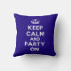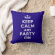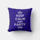 Basierend auf dem ursprünglichen Behalt Calm und ... Poster dieser cremefarbenen und blauen Behielt Calm und Party On Pillow verfügt über einen maßgeschneiderten Schriftart, der dem Original sehr gut entspricht.