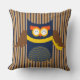 Niedliche Eule auf Schokolade und marineblauen Streifen.