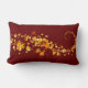 Dieses Kopfkissen ist in einer schönen Bordeaux-Farbe mit einem festlichen Herbstdruck von Herbstlauben zu sehen.