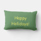 Weihnachtsschmuck in fünf verschiedenen Farben (rot, gelb, orange, blau, grün) auf einer Seite des Kissens. Auf der anderen Seite ist der Text "Happy Holidays!" in gelb. ***Teil des koordinierten Set - BKM2a.