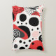 Dieses kühne, dunkelweiße und schwarz akzentuierte Kissen präsentiert ein abstraktes rotes, schwarz-weißes Design, das Ihren persönlichen künstlerischen Stil in der Wohngestaltung ergänzt und verbessert