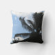 Das Kopfkissen des Wurfs hat ein Foto einer dominikanischen Palme, die am blauen Himmel silhouiert ist