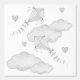Wasserfarbene Drachen, Wolken und Herzen für neutrales Kinderzimmer in Graustufen.