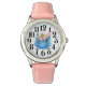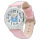 Kinderuhr aus Edelstahl mit rosa Lederarmband