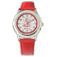 Kinderuhr aus Edelstahl mit rotem Lederarmband