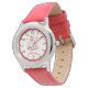 Uhr, Kinderuhr aus Edelstahl mit rosa Lederarmband