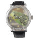 Uhr, Vintage Männeruhr mit schwarzem Lederarmband