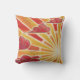 Ein goldfarbenes und orangefarbenes Sonnendeck und der Wind bläst rot und rosa Wolken über den Himmel. Kopfkissen mit goldenem, orangefarbenem, rotem, rosa und weißem Design, das Sie mit Ihren eigenen Texten, Bildern und Ideen individuell gestalten können. Origineller Bleistift und metallische Tinte, gezeichnet von Jess Perry.