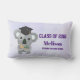 Ein Lumbalkissen mit Klasse von 20xx, angepasst an das Jahr des Abschlusses. Entworfen mit einem lila Hintergrund. Illustriert mit einem niedlichen Koala-Bär mit einer schwarzen Graduationskappe, der einige Eukalyptus-Blätter frisst. Auch personalisieren mit einem Namen und Schule.
