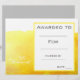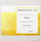 Eine stilvolle Auszeichnung der modernen Klasse mit einem niedlichen Farbspritzer Aquarellgelb-Image, das perfekt geeignet ist, einen jungen Kunststudenten zu ermutigen. Sie können in Ihre eigenen Details schreiben. Eine großartige Ressource für jede Art von Klassenlehrer.