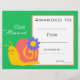 Ein stilvoller, moderner Klassenpreis mit niedlichem Schneckenbild, der perfekt geeignet ist, einen jungen Schüler zu ermuntern. Sie können in Ihre eigenen Details schreiben. Eine großartige Ressource für jede Art von Klassenlehrer.