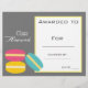 Klassenprämie niedliches Macaron-Kinderzertifikat