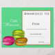 Klassenprämie niedliches Macaron-Kinderzertifikat
