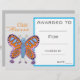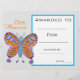 Ein stilvoller, moderner Klassenpreis mit niedlichem Schmetterlingsbild, der perfekt geeignet ist, einen jungen Schüler zu ermuntern. Sie können in Ihre eigenen Details schreiben. Eine großartige Ressource für jede Art von Klassenlehrer.