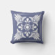 Entspannen Sie sich klassisch in Blau und Weiß gemusterte Kissen. Cooles Hampton's blaues Kissen, mit einem großen dekorativen Fliesenmuster. Die Rückseite hat das gleiche Muster, aber in Miniatur. Ideal für den Zuhause oder den lässigen Themenraum an der Küste des Hampton.