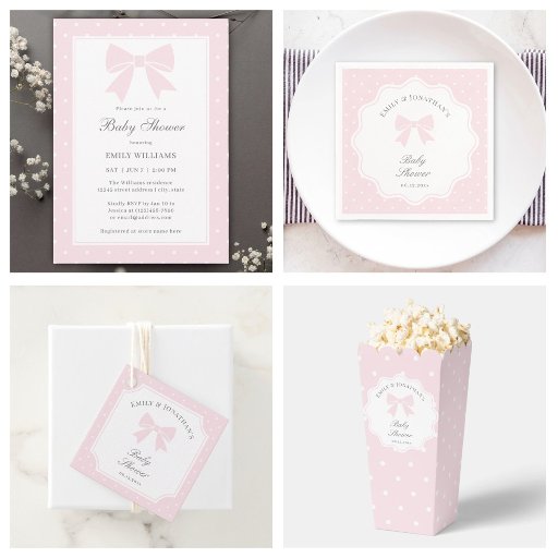 Classic Polka Dots Baby Pink Bow Girl Baby ShowerDesignt von T Y