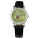 Uhr, Klassische Damenuhr mit schwarzen Lederarmband