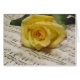 Gelbe Rose auf einem Blatt klassischer Musik platziert.