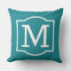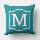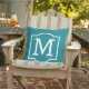 Stilvolles und klassisches quadratisches Kissen mit Akzenten im Außenbereich mit einem Monogramm-Initial mit einem schlichten, weißen Rahmen mit aquamarinem, grün-blauen Hintergrund. Passen Sie den Hintergrund an, um sich mit Ihrer Außendekoration abzustimmen.