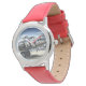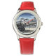 Kinderuhr aus Edelstahl mit rotem Lederarmband