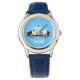 Kinderuhr aus Edelstahl mit blauem Lederarmband